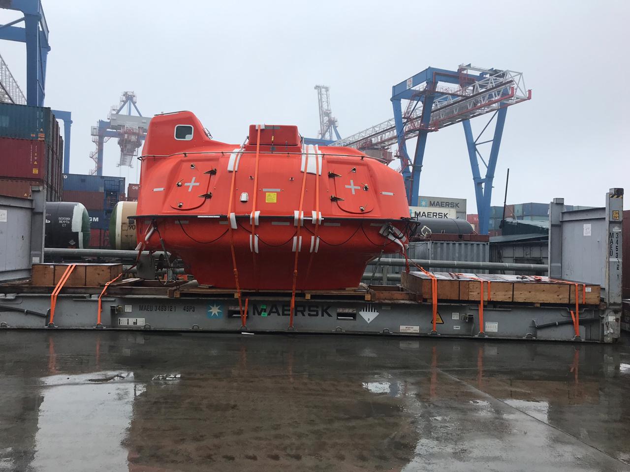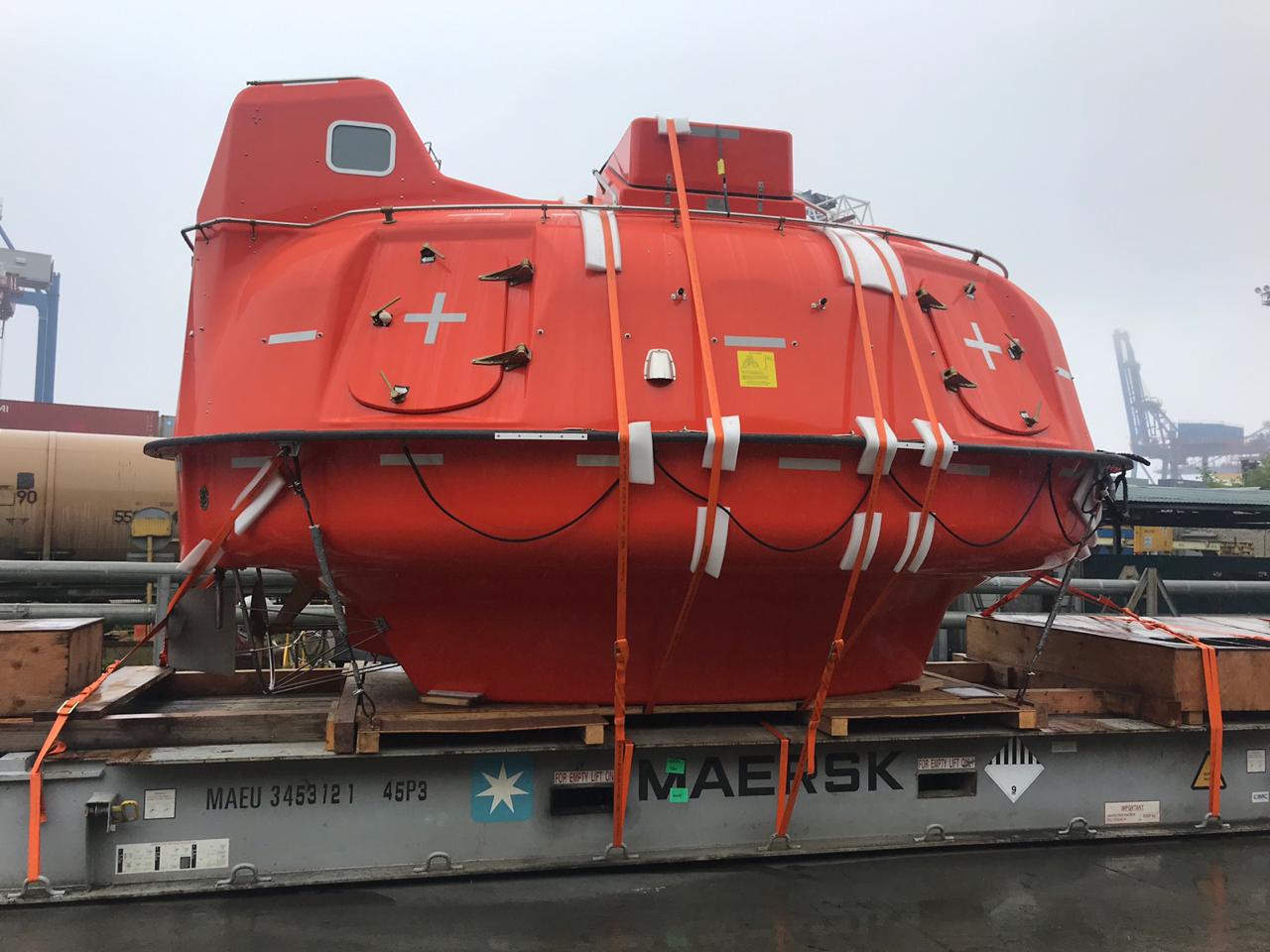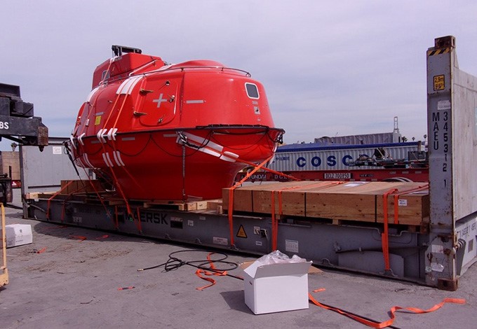 用于钻井平台的密封舱救生艇, 标准配置,并带有着陆支撑和护舷球